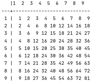 System.out.printf("%3d", i * j);
